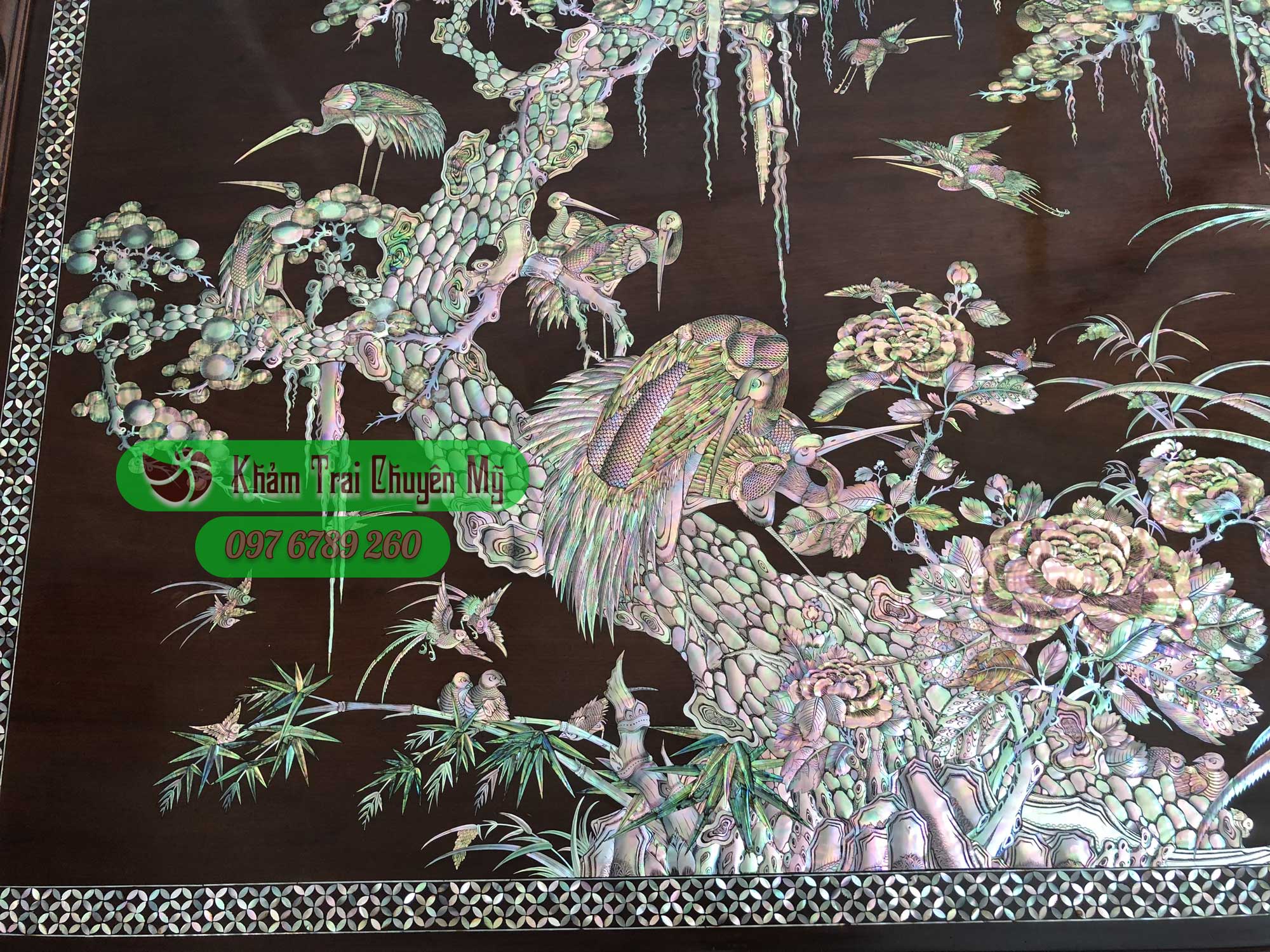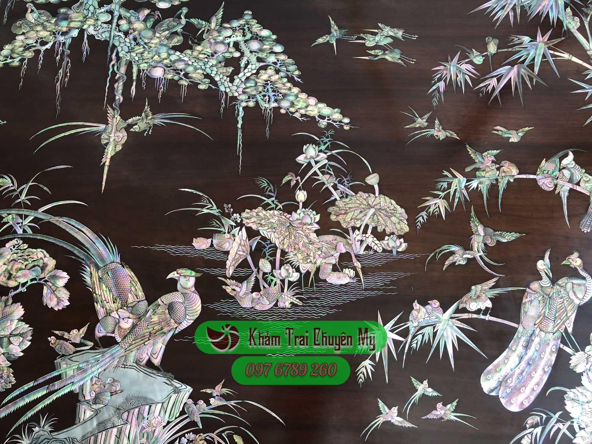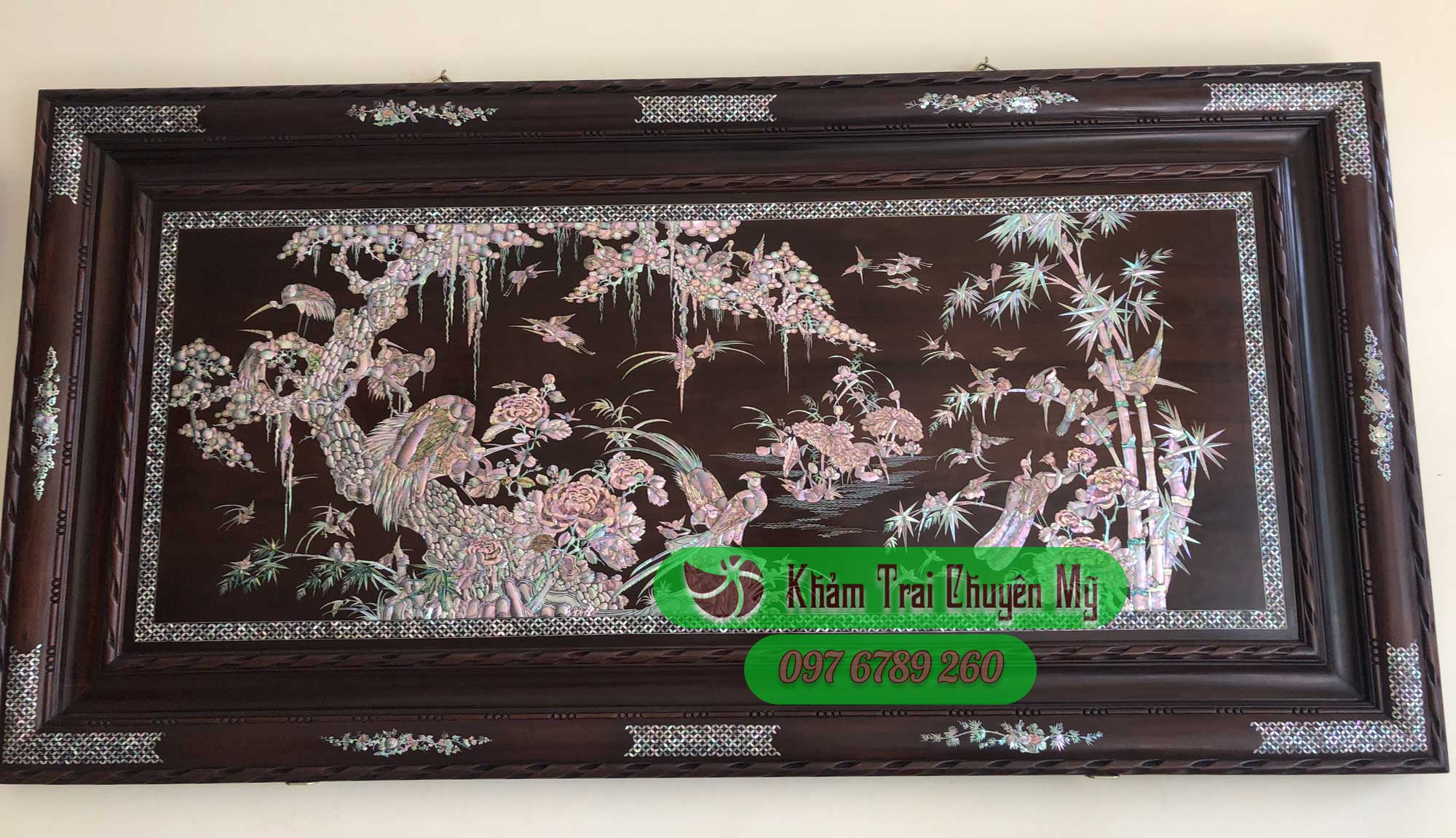 Tranh gỗ khảm ốc Bách điểu quần tùng