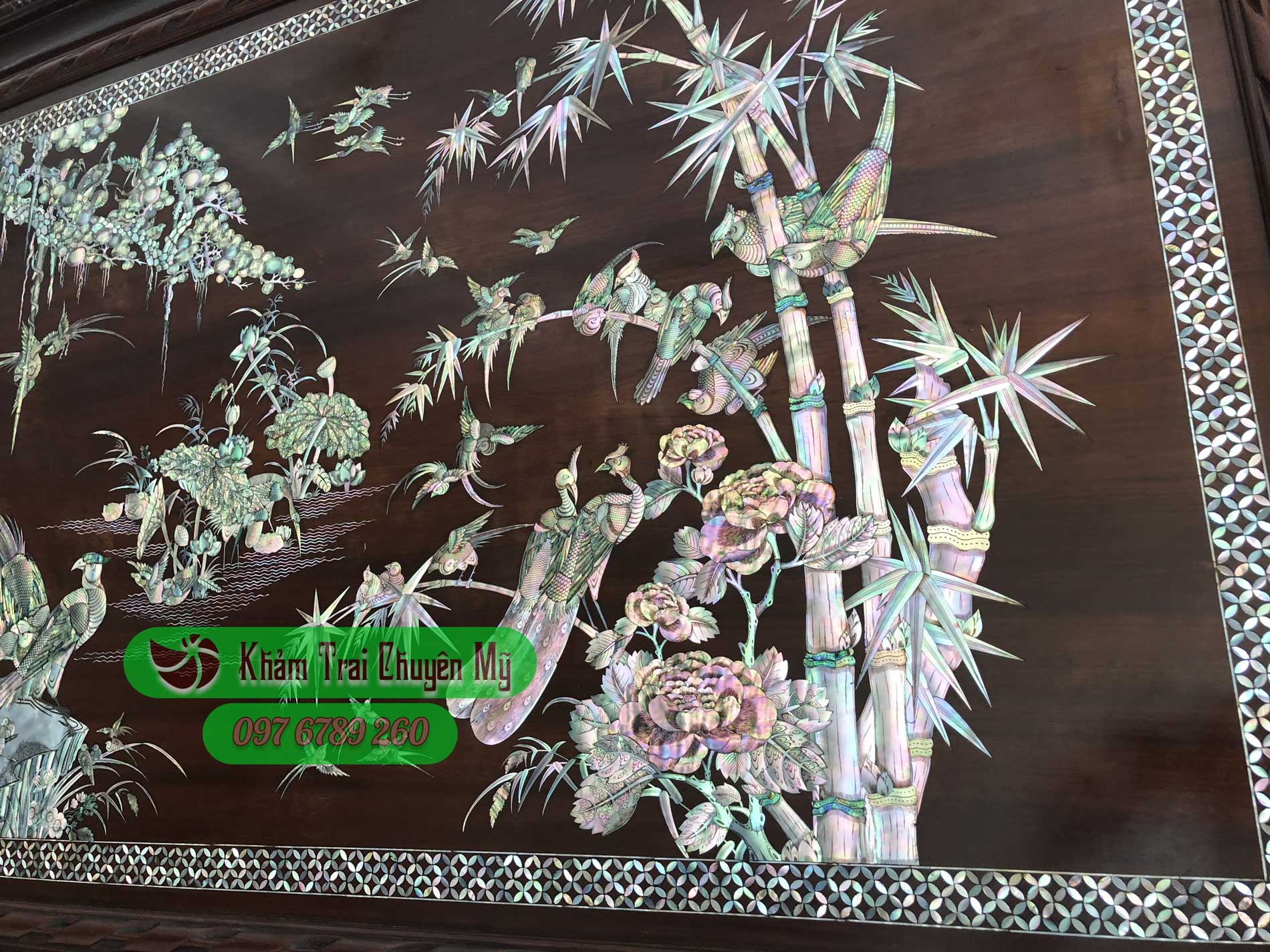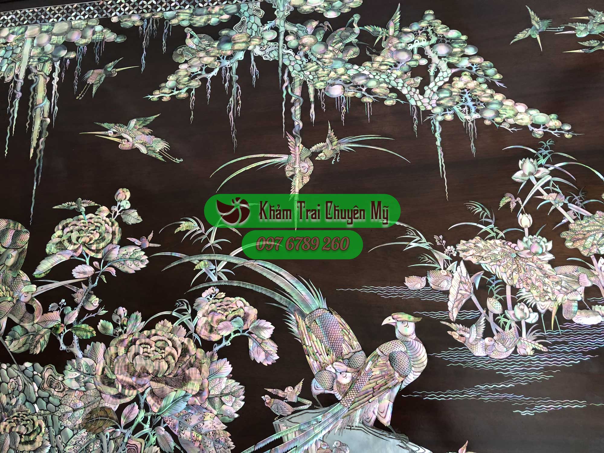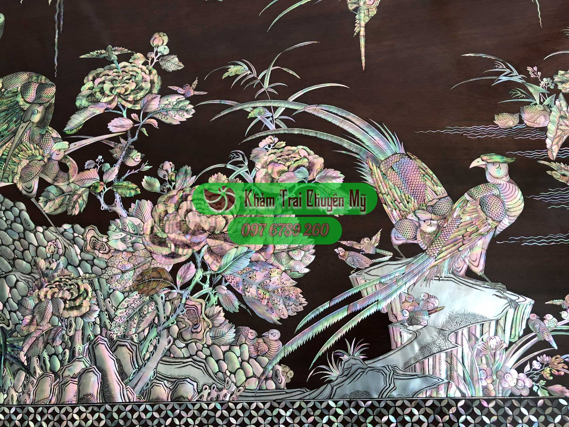 Tranh gỗ khảm ốc Bách điểu quần tùng