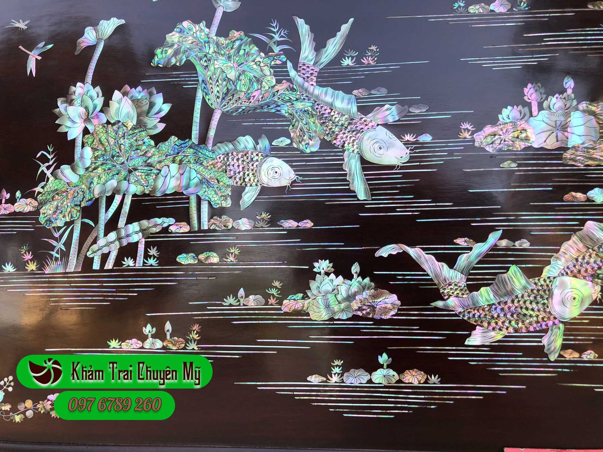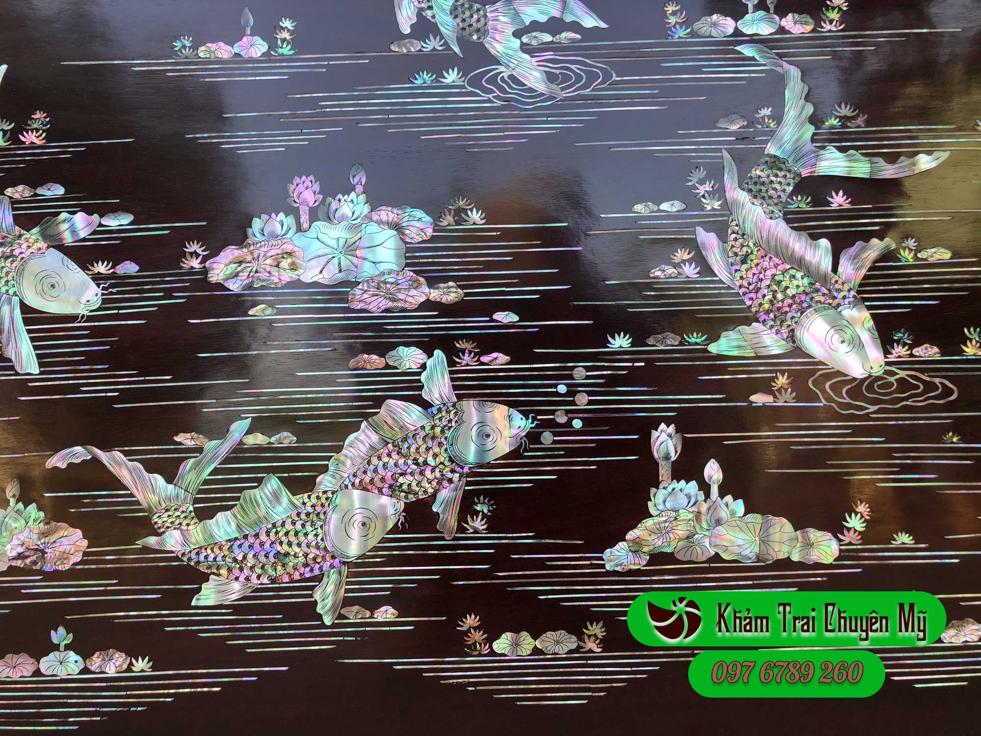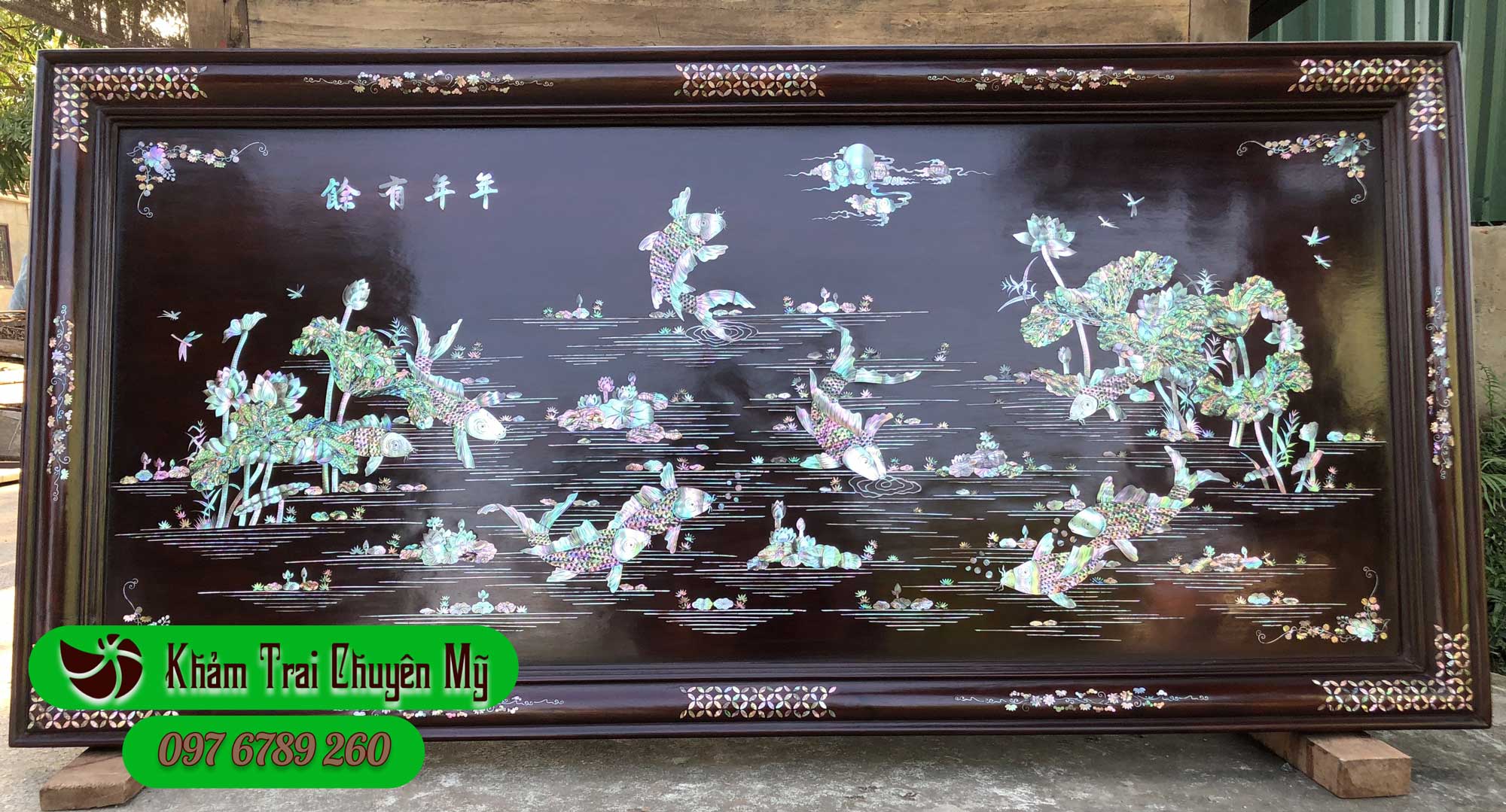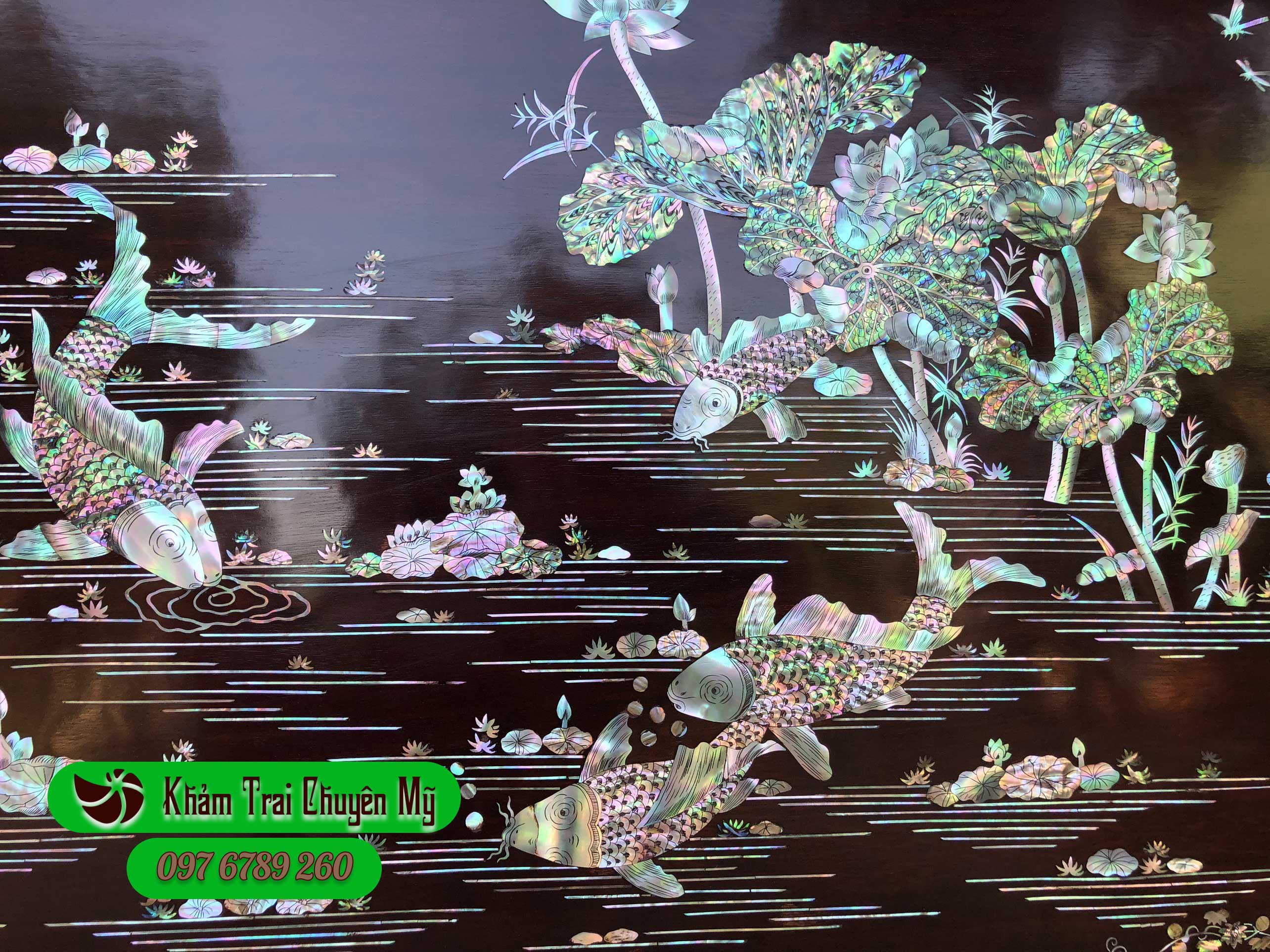 Tranh gỗ khảm ốc Cửu ngư quần hội
