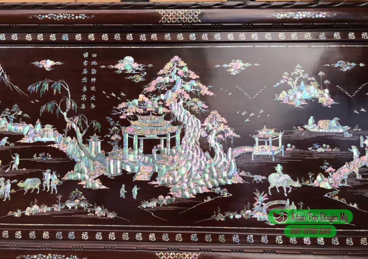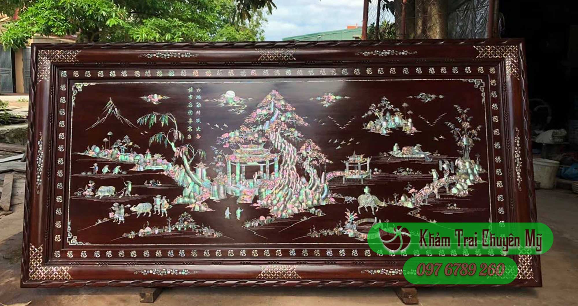 Khung nền: gỗ gụ, ván liền nguyên tấm dày 1,8 phân, khung dày 5 phân.