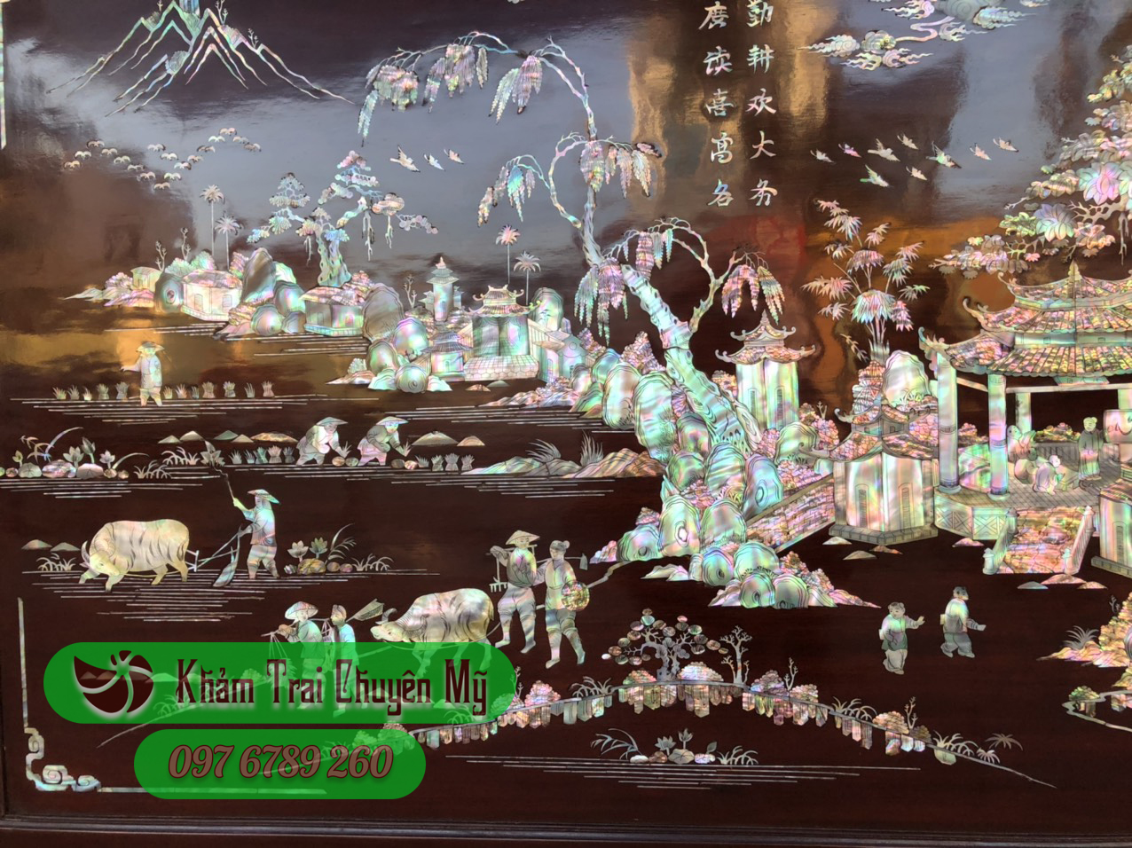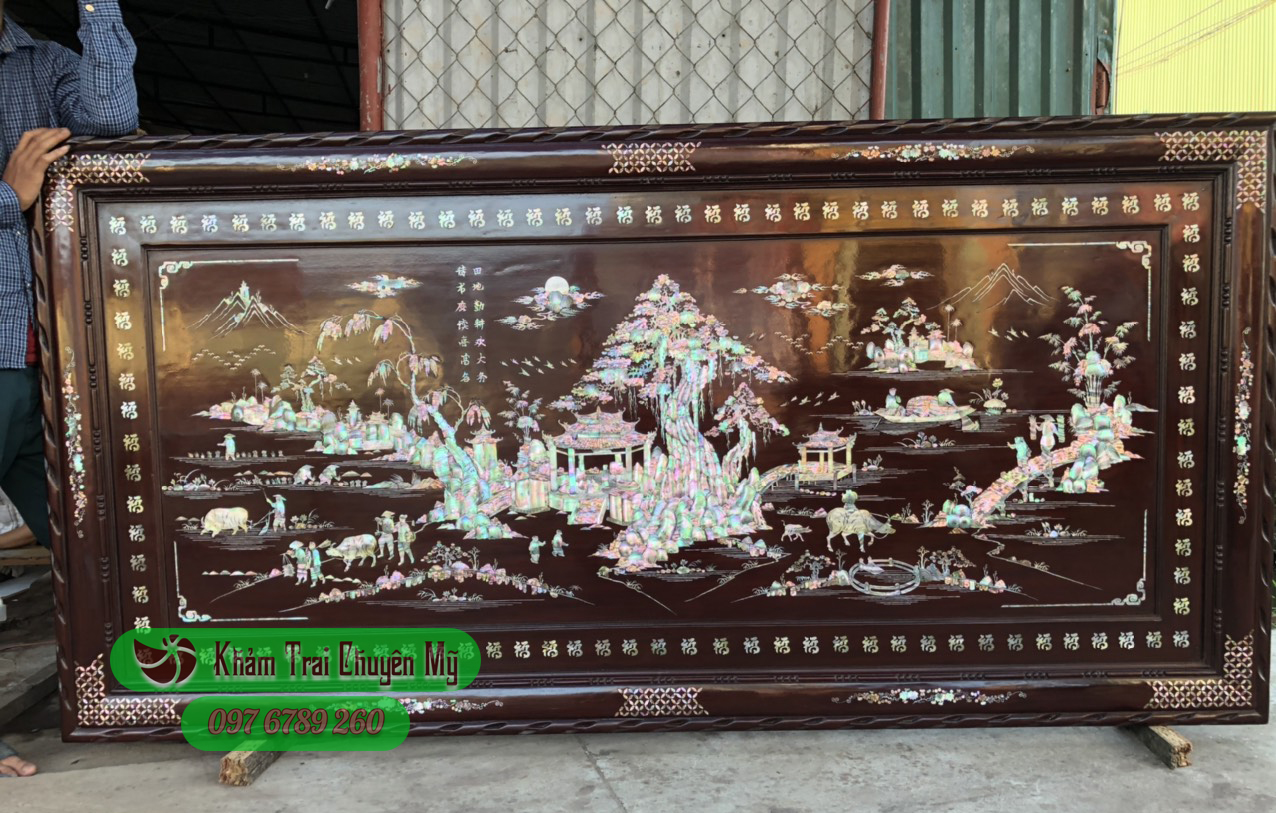 Tranh gỗ khảm ốc Đồng quê thanh bình
